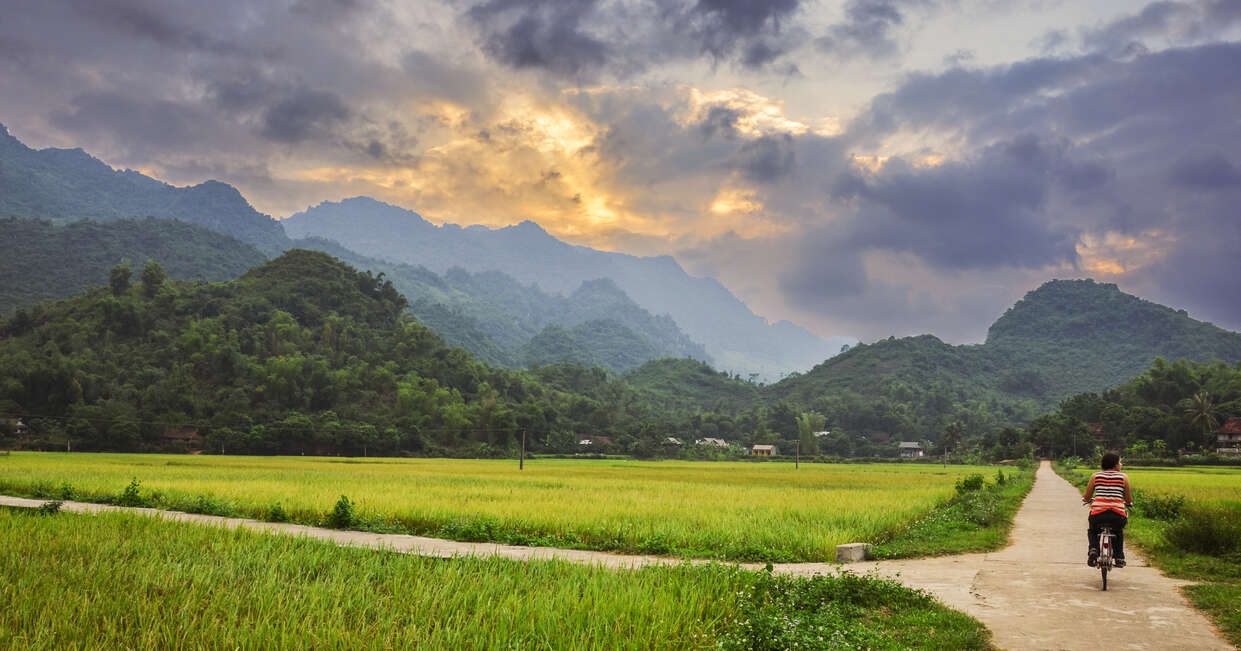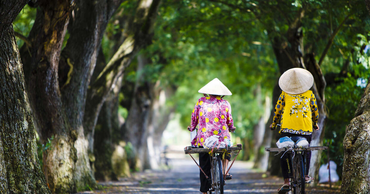 After lunch we take a leisurely bike ride through the lush rice paddies, passing pagodas and through small villages.