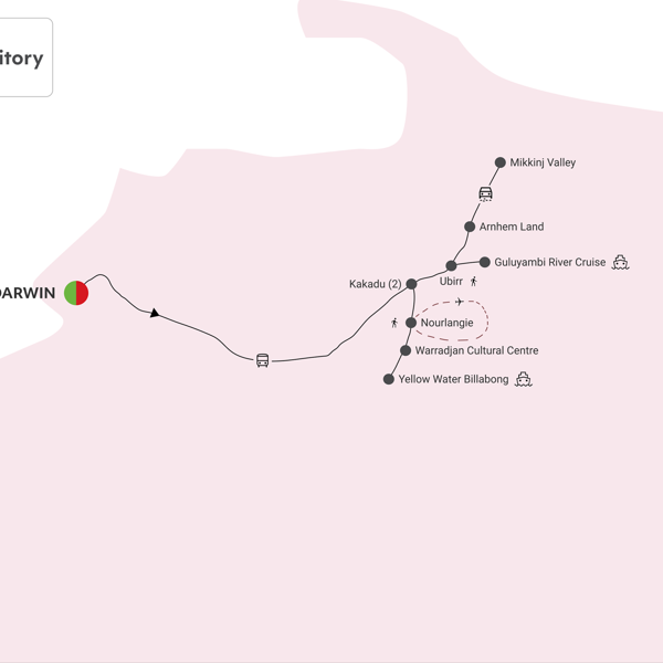 This morning join your Driver Guide to explore the World Heritage Area of Ubirr, where you’ll climb up through the ancient Aboriginal rock art galleries, believed to be 20,000 years old, to the lookout for a view over the surrounding wetlands. Join the Guluyambi Cruise on the East Alligator River. An Aboriginal guide will provide an insight into their culture, including local mythology, the river’s abundant food chain, as well as bush survival skills. With special permission of the local people, you can go ashore in Arnhem Land. Visit the Marrawuddi Art Gallery before returning to Darwin, where your short break concludes.