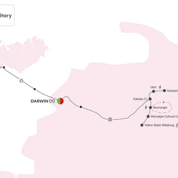 This morning join your Driver Guide to explore the World Heritage Area of Ubirr, where you’ll climb up through the ancient Aboriginal rock art galleries, believed to be 20,000 years old, to the lookout for a view over the surrounding wetlands. Join the Guluyambi Cruise on the East Alligator River. An Aboriginal guide will provide an insight into their culture, including local mythology, the river’s abundant food chain, as well as bush survival skills. With special permission of the local people, you are able to go ashore in Arnhem Land. Visit the Marrawuddi Art Gallery before returning to Darwin.