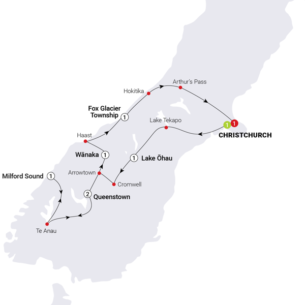 Explore New Zealand's stunning South Island on a small group tour. Embark on an unforgettable overnight cruise in majestic Milford Sound and explore adventurous Queenstown. Enjoy overnight stays surrounded by breathtaking mountains and lakes. From the shores of Lake Wanaka and Lake Ohau to the wild West Coast, this compact tour of the best of the South Island is a breathtaking journey of epic proportions.