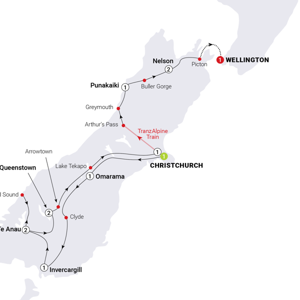 - Visit Transport World, home to rare valuable vehicles, for a guided tour MAKE TRAVEL MATTER® Experience - Experience the charm of rural life at Real Country, featuring sheep shearing, and a chance to have a go at whip cracking Embark on a cruise in Milford Sound to admire towering cliffs, cascading waterfalls, and untouched fiord scenery in Fiordland National Park See Franz Josef Glacier from a panoramic viewpoint Visit Punakaiki’s Pancake Rocks from a scenic viewpoint and stay in an Eco Resort located right on the beach at Punakaiki Visit Nelson, gateway to Abel Tasman National Park Cruise the Cook Strait from Picton to Wellington Experience one of the world’s great train journeys aboard the TranzAlpine through the Southern Alps Sample Queenstown’s world-famous Fergburger View the Church of the Good Shepherd at Lake Tekapo