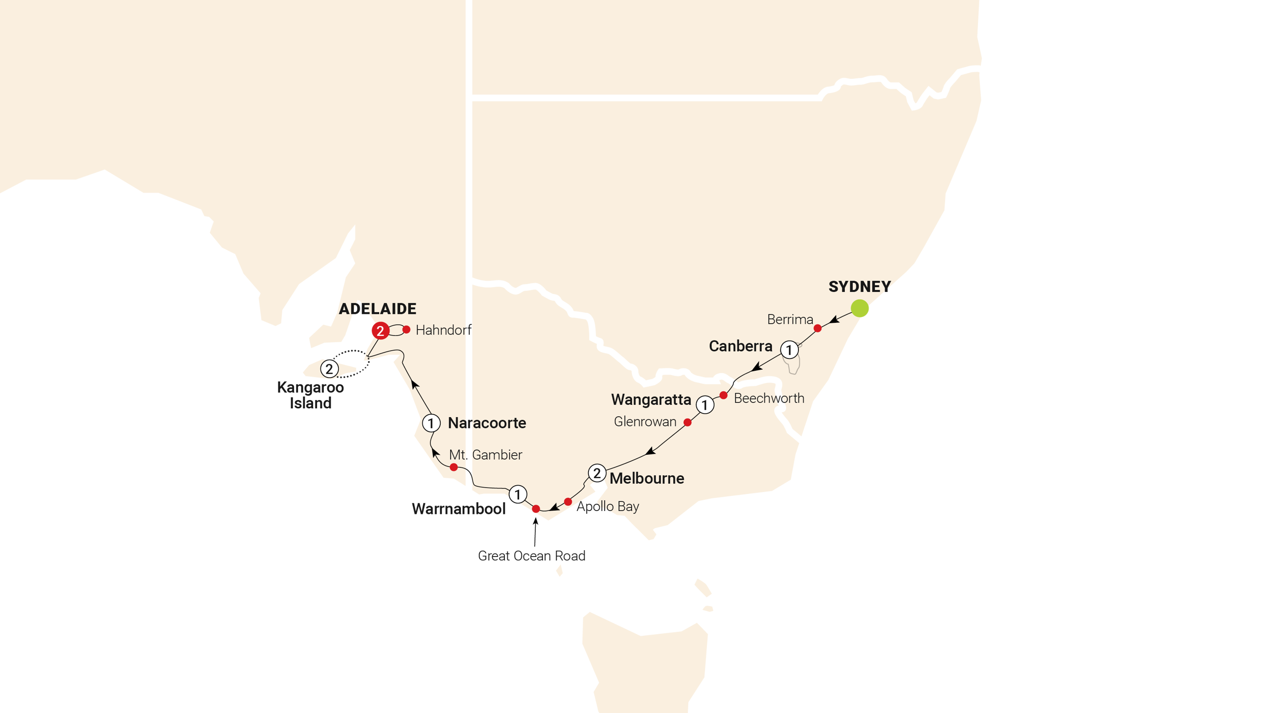 Experience the best of Southern Australia with the Tastes of Southern Australia tour. This 11-day journey takes you from Sydney to Adelaide, exploring Canberra, Melbourne, the Great Ocean Road, Coonawarra and Kangaroo Island. Enjoy guided tours, premium accommodation, and indulge in local wines, and gourmet cuisine. Visit iconic landmarks like the Twelve Apostles and Seal Bay Conservation Park. With expert guides and immersive experiences, this tour offers a perfect blend of culture, nature, and gastronomy.