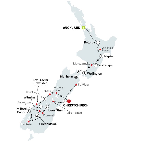 Experience the very best of New Zealand on this small-group adventure from Auckland to Christchurch. Highlights include an unforgettable overnight cruise in majestic Milford Sound, immersive Māori cultural encounters in Rotorua, a guided Art Deco walking tour in Napier, wine tasting at a boutique Wairarapa vineyard, and engaging local connections - from a fifth-generation beekeeper to the Pavlova Queen of Lake Tekapo. Add in aviation history, farm shows, and breathtaking landscapes, and you’ve got an untamed journey to remember.