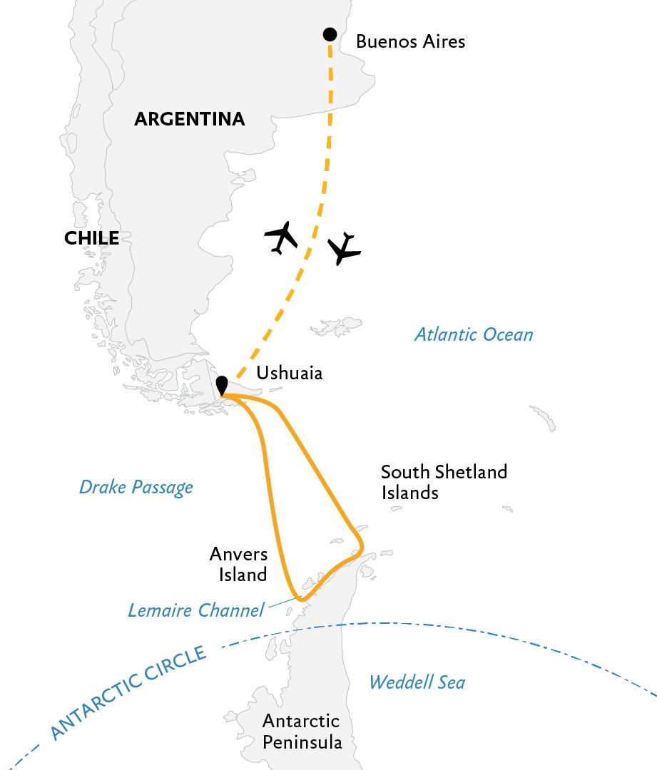 Once the Drake Passage is left in our wake and the South Shetland Islands come into view, your Antarctic adventure truly begins. You will begin to appreciate why this region has long captivated the attention of explorers and travelers alike. On every visit to Antarctica, we witness something new or unexpected, which means your expedition will be unlike any other—a unique, personal experience.Each day, you will take Zodiac excursions from the ship to explore local bays, channels and landing sites. With wildlife always at the forefront of our minds, you will visit penguin rookeries, scout for humpback and minke whales, and search for a number of southern seal species, including the cunning leopard seal.The majesty of the Antarctic Peninsula’s mountains will enchant as you hike snowy pathways to vantage points offering panoramic views of your surroundings. You will discover that Antarctica is a land of extremes. At one moment you’ll be overcome with a feelingof complete isolation and silence, and the next you’ll be inspired by nature as a calving glacier crashes into a brilliant blue sea or a penguin waddles by to inspect your footwear.Amid the serene silence of Antarctica, noisy interludes—such as penguins squabbling over prized pebbles—become indelible memories.Each day will be different, carefully crafted by your Expedition Team to inspire and educate you about this wonderful part of the world.