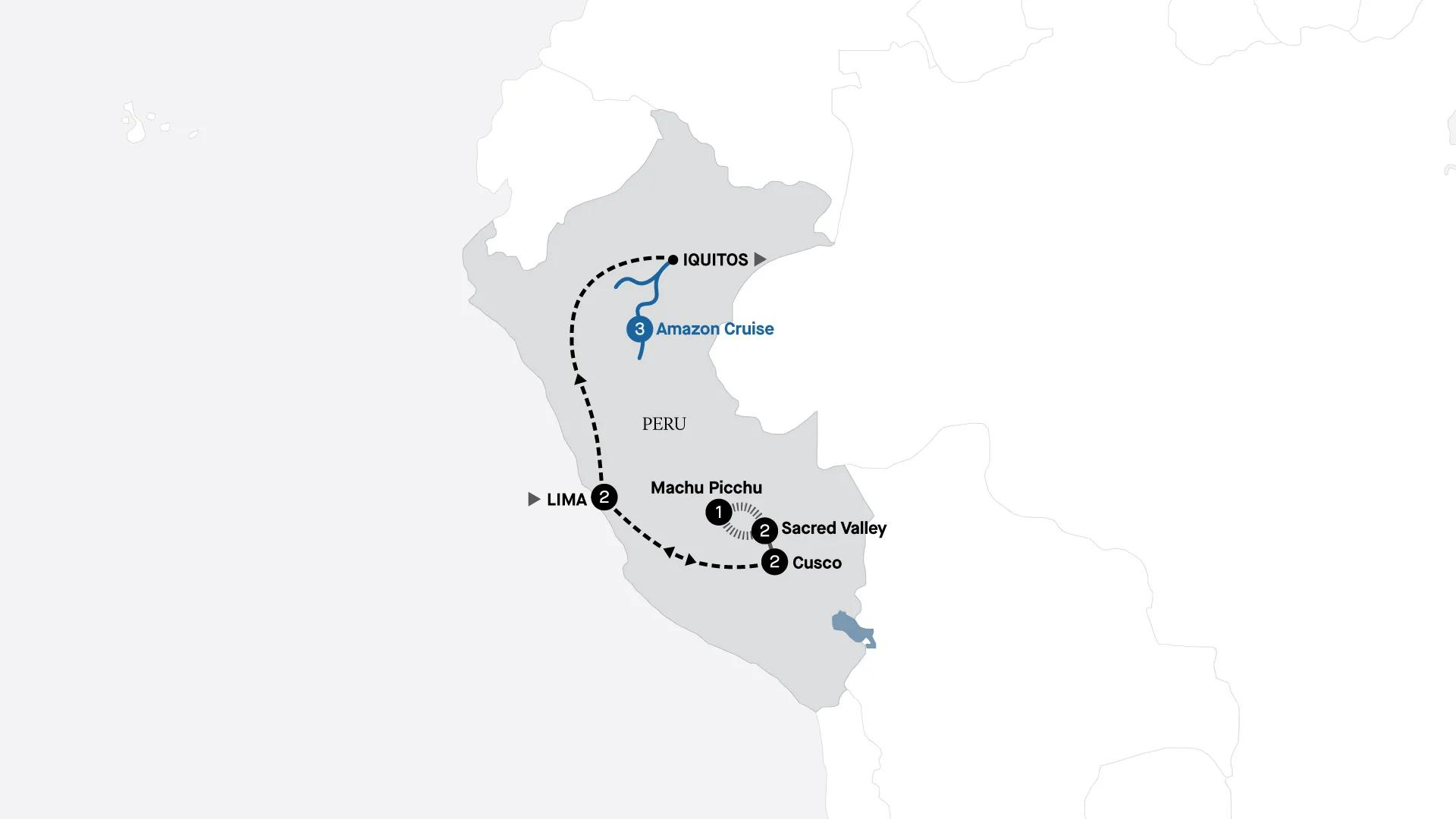 Spend 11 days exploring Peru’s highlights and rich culture. Travel aboard Inca Rail’s First Class Machu Picchu Train to the awe-inspiring Lost City of the Incas, savour Andean-inspired cuisine, and discover cultural hubs including Lima and Cusco. Conclude your journey with a spectacular three-night cruise through the Peruvian Amazon aboard the luxurious Delfin III, where you'll encounter the rainforest's biodiverse flora and fauna, as well as daily life in local communities.