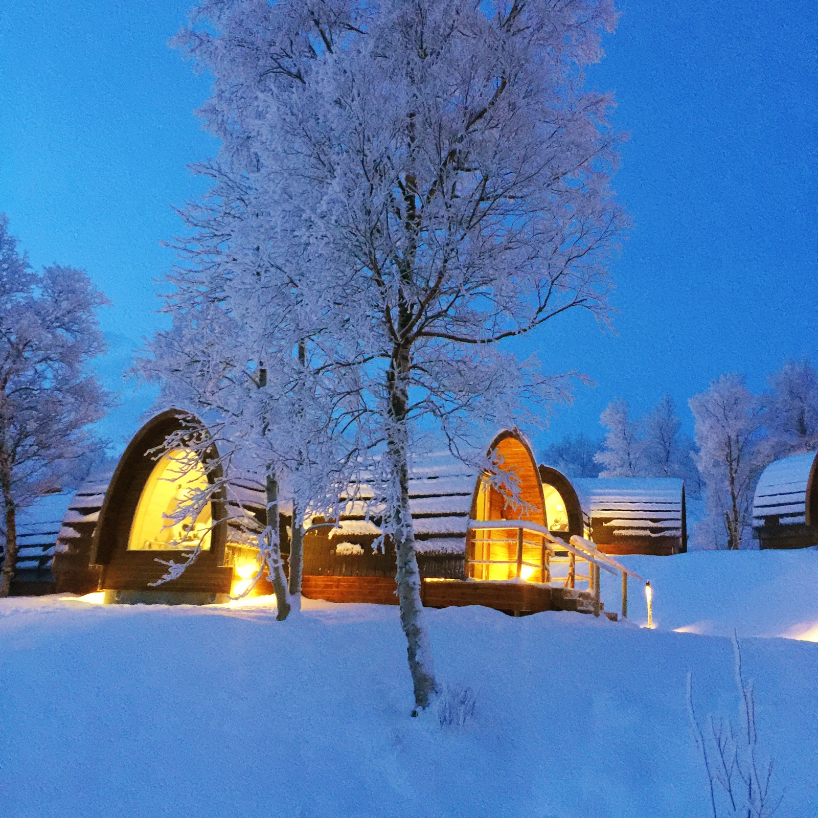 - Stay in two unique Northern hotels, Aurora Village and the Gamme Cabins or a snow room in Kirkenes
