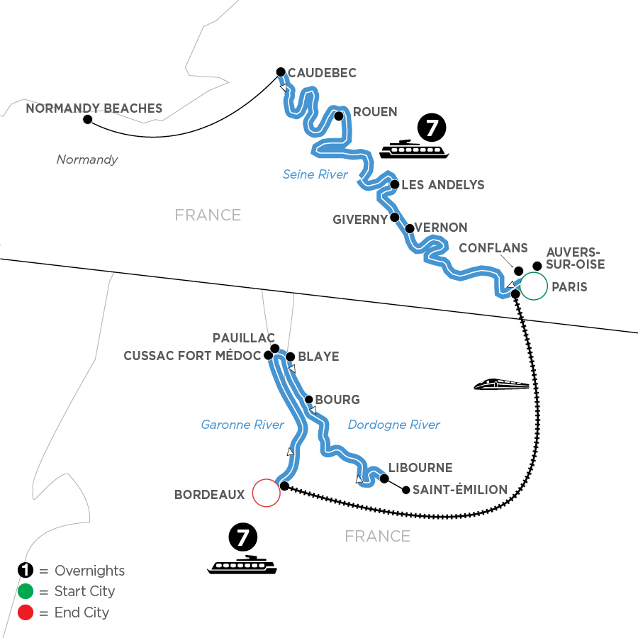 Welcome to France! Your Suite Ship® is Ready for Boarding.Flights into Paris must arrive by 2:30 pm. Guests must be on board ship by 5 pm.Your day is free to explore the world’s most romantic city before starting your cruise on the Seine. Get acquainted with the City of Light today with some shopping, strolling, or with a croissant and café au lait to watch the world go by amid the Parisian cityscape.EVENING/OVERNIGHT CRUISE TO VERNON(D)