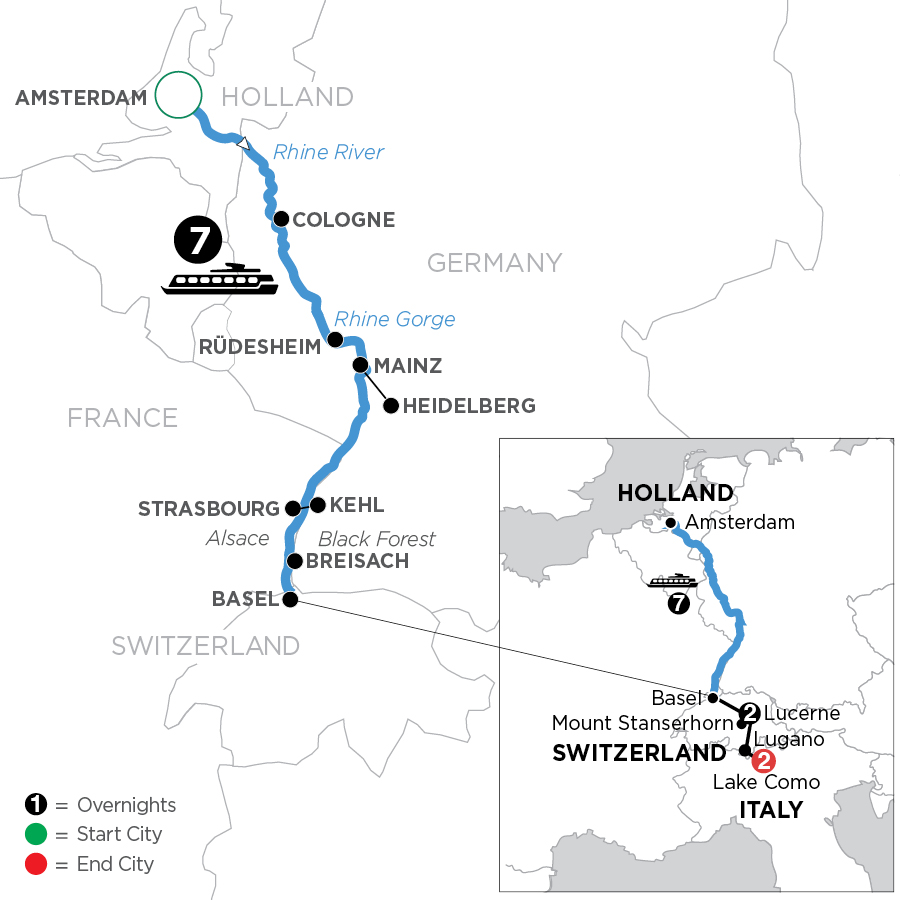 We’re rockin’ the boat with Sister Hazel’s third storied sailing designed ‘All for You’ on the Rhine River! Back by popular demand from Hazelnuts and music lovers alike, the chart-topping Billboard Hot 100 band sails with Avalon once again to thrill fans and friends while sailing along the sights that sing on the Rhine River. From Amsterdam to Basel and beyond, we’ll rock and roll to the rhythm of the Rhine with history-making destinations that don’t miss a beat. Sway through Germany, Holland, France, and Switzerland with exclusive onboard performances and special personalized events. This toe-tapping, hand-clapping cruise is sure to “All Go by So Fast,” so don’t miss your chance to celebrate with a “Champagne High” to familiar fan favorites and tracks from the band’s brand-new album Sand, Sea & Crash Debris. Your Avalon Storyteller cruise with Sister Hazel begins in Amsterdam with a cruise on its legendary canals and a local beer experience. Next, we’ll roll on the river to Germany’s 2,000-year-old city of Cologne where its Gothic-style cathedral, cafes, and a Kolsch Brewery tour that raises the roof. Or let the good times roll with an e-bike tour of this iconic city! The next high note on our playlist is the spectacular Rhine Gorge, winding through cliffs and castles soaring high above. Keep the music playing with a visit to the vineyard village of Rüdesheim to experience centuries of musical inventions at Siegfried’s Mechanical Musical Instrument Museum or make some history of your own with legendary local wines. More big hits await in Mainz where the fascinating Gutenberg Museum or the castle ruins of Heidelberg top the playlist. Raise a glass with your fellow Hazelnuts with a wine tasting in Alsace, then dance and enjoy a food tour through time in Strasbourg, France to marvel at the red-sandstone, Gothic-style cathedral with ancient murals. Do the stroll through the quaint shops and bistros of the lovely La Petite France district and rock your world with cherry cake and cuckoo clocks in Breisach, Germany—gateway to the legendary Black Forest. Grab an e-bike to explore this legendary area or chase a natural high with one of Germany’s highest waterfalls at Triberg Falls. Your VIP backstage pass awaits on this special Suite Ship® sailing for sweet southern rock-n-rolling on the Rhine River!Disembark your Sister Hazel Storyteller cruise in Basel and continue your vacation in Lucerne and Lake Como, starting with a special excursion up Mount Stanserhorn for spectacular Swiss Alpine panoramas and a guided walking tour to explore lovely Lucerne. Transfer by motorcoach to Como and enjoy a stop and sightseeing on the way in Lugano. In Como, an included guided walking tour features the charming historic district, the Gothic-style Town Hall, and the impressive Duomo. Enjoy a relaxing boat ride on Lake Como to renowned Bellagio with its centuries-old buildings, cobblestone lanes, and charming shops. In your free time, you might like to travel to fashionable Milan or ride the funicular to the village of Brunate. The perfect end to your magnificent vacation!MORE ABOUT SISTER HAZEL Originating from Gainesville, FL, Sister Hazel is comprised of five gifted, seasoned musicians whose well-spring of natural talent has been called "one of the Top 100 Most Influential Independent Performers of the last 15 years" by Performing Songwriter Magazine. The band’s popular single, "All for You," topped the adult alternative charts in 1997—propelling their album to platinum status. The band followed this success by topping the country music charts with their country debut “Lighter In The Dark,” with repeat chart toppers across Billboard genres—from alternative to country to folk. With a faithful following of fans, aka Hazelnuts, Sister Hazel hosts annual events, including “Hazelnut Hang” and themed cruise experiences via “The Rock Boat,” featuring fan/artist interaction. The ever-popular group marked the band's 30th anniversary with the highly awaited full-length 13th studio album, Sand, Sea & Crash Debris.