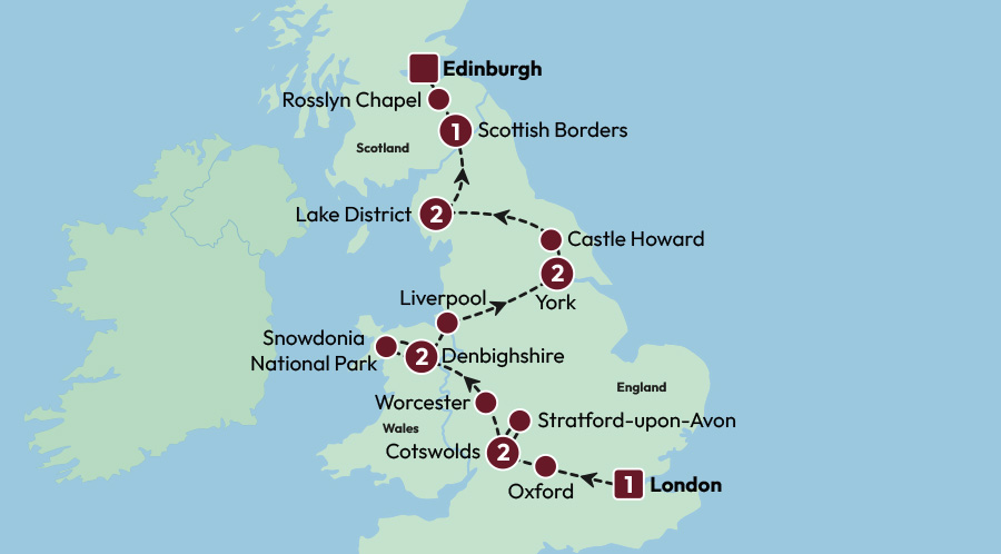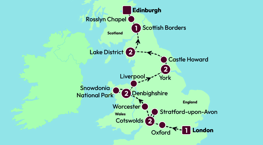 - Explore the scenic back roads of Britain’s most spectacular regions including the Cotswolds, Snowdonia National Park, the Yorkshire Dales and the Lake District