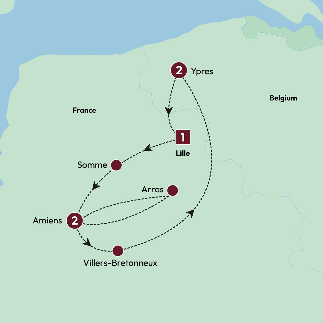 Uncover moving tales of courage, victory and tragedy during this thought-provoking journey along the Western Front. Walk in the footsteps of Commonwealth soldiers in the Sommes’ mud-splattered trenches. Listen to the poignant sound of the Last Post at the Menin Gate. And witness the sheer devastation of war whilst gazing out at a sea of white gravestones in Fromelles. On this WWI tour, you won’t just discover the stories of the fallen – you'll connect with them in a deeply personal way.