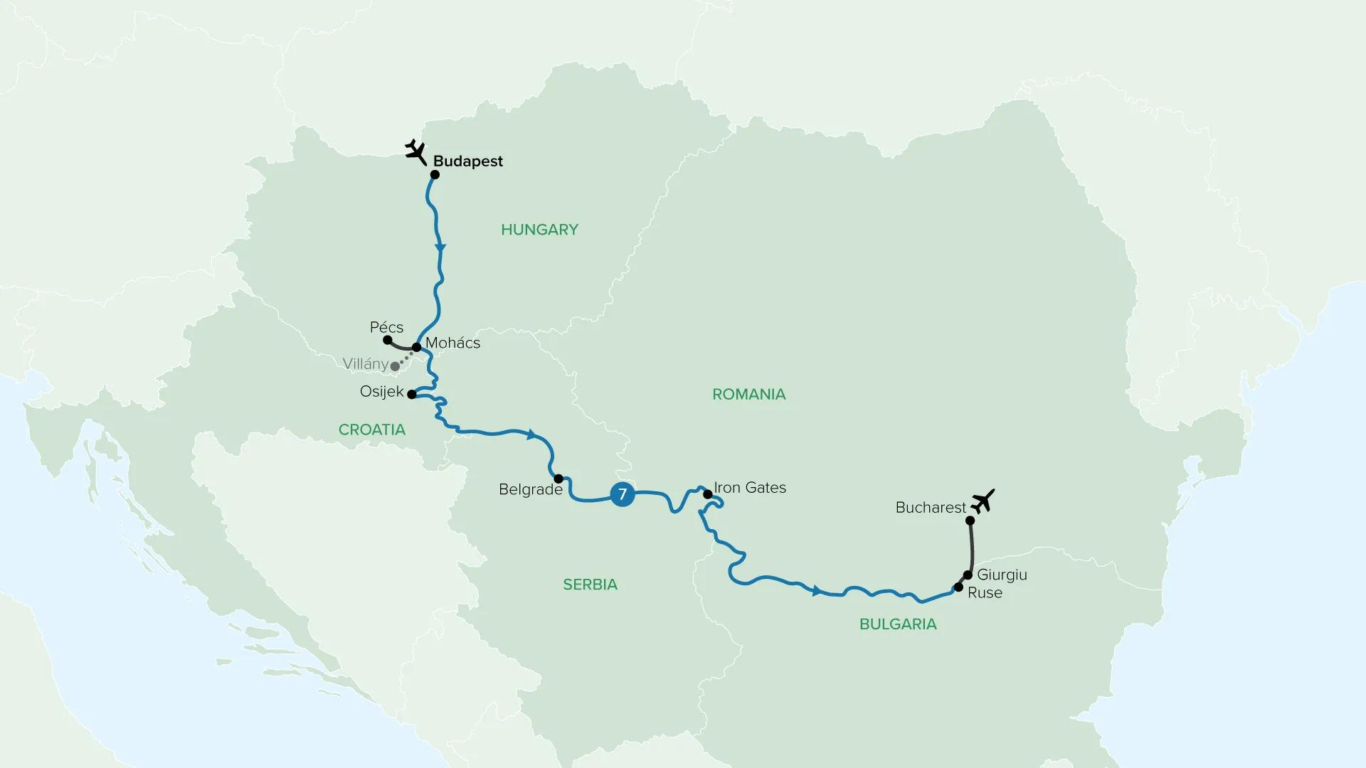 Discover the beauty of the Balkans along the Danube River. Begin with the grand sights of Budapest before venturing off into small Hungarian towns. Explore Belgrade, cruise through the magnificent Iron Gates, and conclude your journey with a transfer to Bucharest.