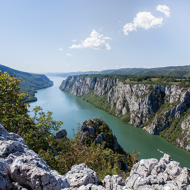 Sail through the spectacular and narrow Iron Gates Gorge-a natural border between Serbia and Romania.