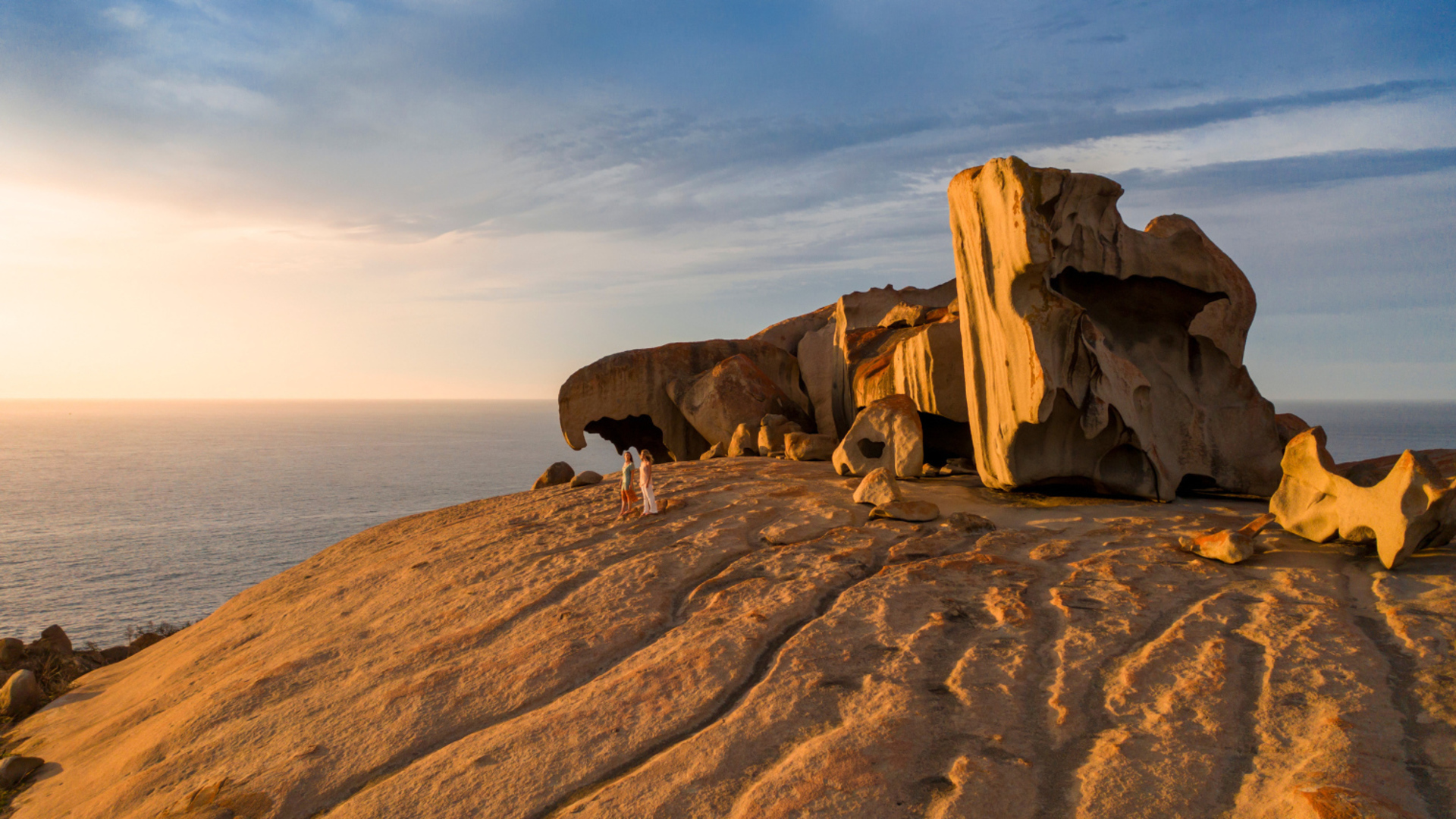 Travel into Flinders Chase National Park and explore the massive shapes of Remarkable Rocks, a natural sculpture perched impossibly on top a granite dome plunging into the ocean. Then you’ll break for an elegant picnic lunch in the bush, or if weather permits, on a spectacular clifftop. Evidence of the power of the Southern Ocean swell continues at Admirals Arch – a coastal grotto that provides a haul out for a large colony of Long-nosed Fur Seals, which swim effortlessly through the crashing waves.