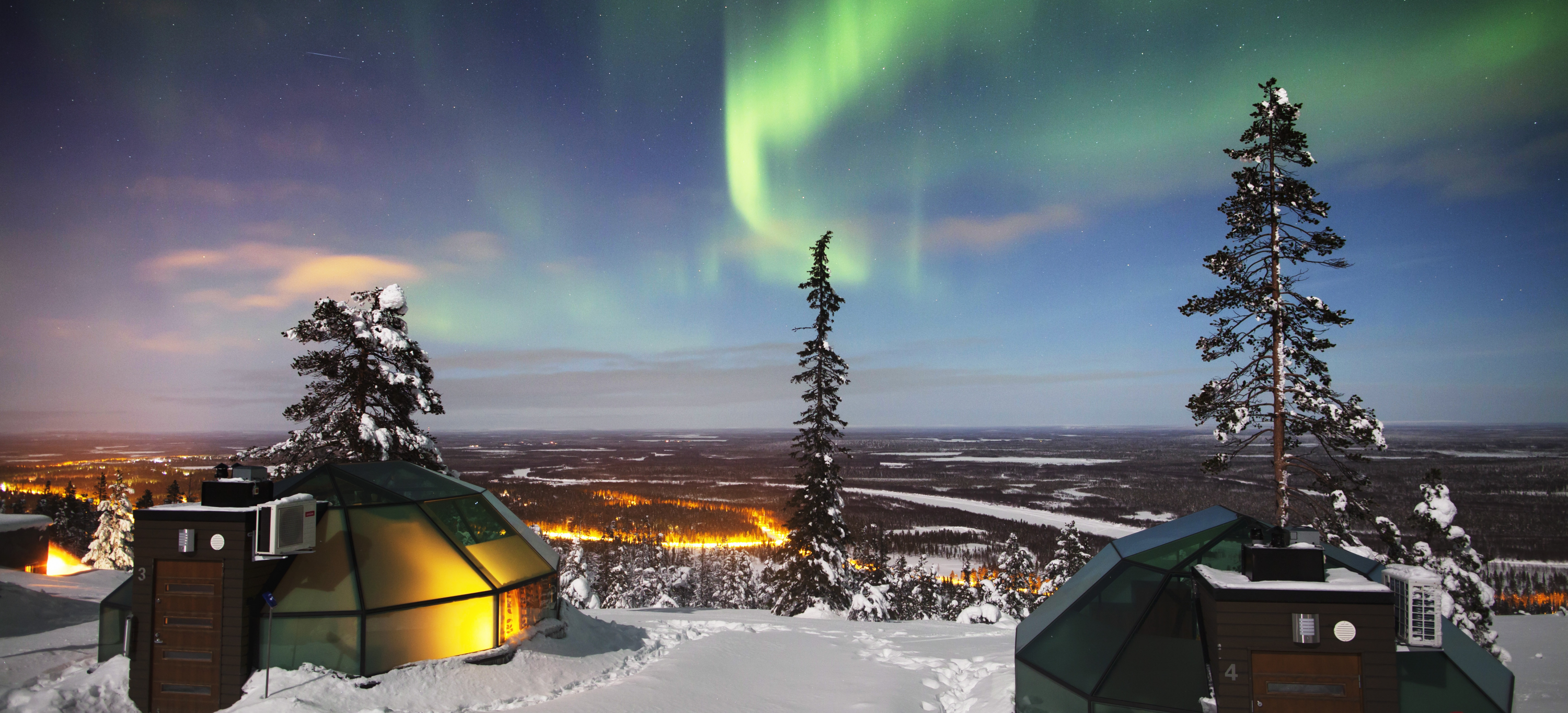 - Spend two nights in Finland's glass igloos, fall asleep in a warm bed on a fell slope admiring the Arctic starry sky