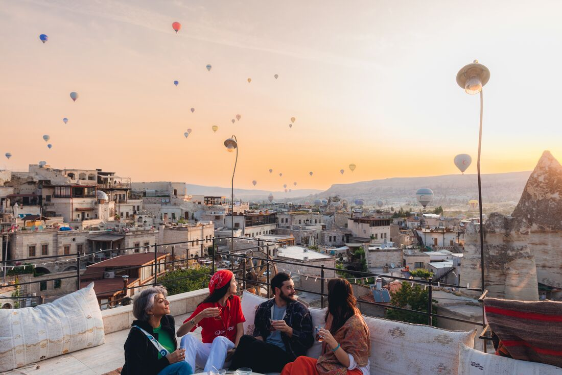 This morning, you might want to rise early and see Cappadocia’s unique landscapes from above – in a hot air balloon! Although this activity isn’t included, it's a highly recommended experience that most travellers opt for to see the desert scenes at sunrise. This afternoon, take a walk through one of the nearby valleys with your leader. It could be the Valley of Love where the fairy chimneys, deserted rock cut homes, and churches with frescoes will astound you, or any of the other scenic routes here. You might also want to visit the Open Air in Goreme – a monastic complex composed of churches, rectories and dwellings, and one of the earliest centres for religious education. Tonight, you’ll be warmly welcomed into a local cave home. The family will prepare a special home-cooked dinner for your group. Sit down to a feast made with passion, enjoy a friendly chat with your host and perhaps top off the night with some Turkish delight.