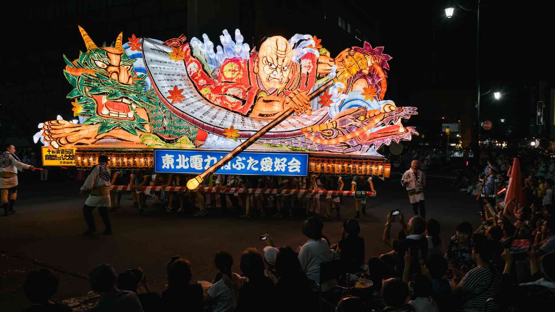 Tonight, we experience the vibrant Aomori Nebuta Festival, one of Japan’s most spectacular celebrations. Towering, illuminated warrior floats light up the streets as energetic dancers shout 'Rassera!' and the air fills with the beat of taiko drums and the sound of flutes. We’ll even have the chance to join in by wearing a haneto costume, truly immersing ourselves in this unforgettable cultural experience.