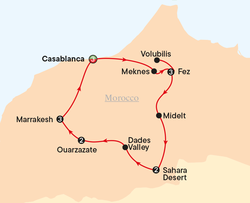 Today we depart the idyllic Marrakesh and make our way back to the beautiful Casablanca.