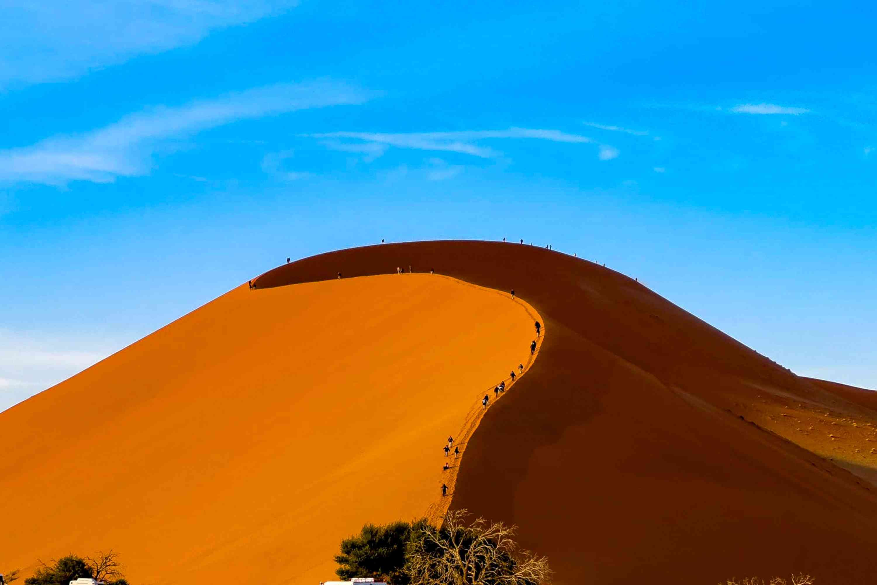 After an early breakfast, we’ll depart Windhoek and embark on a scenic journey towards the breathtaking Sossusvlei, deep in the heart of the Namib Desert.