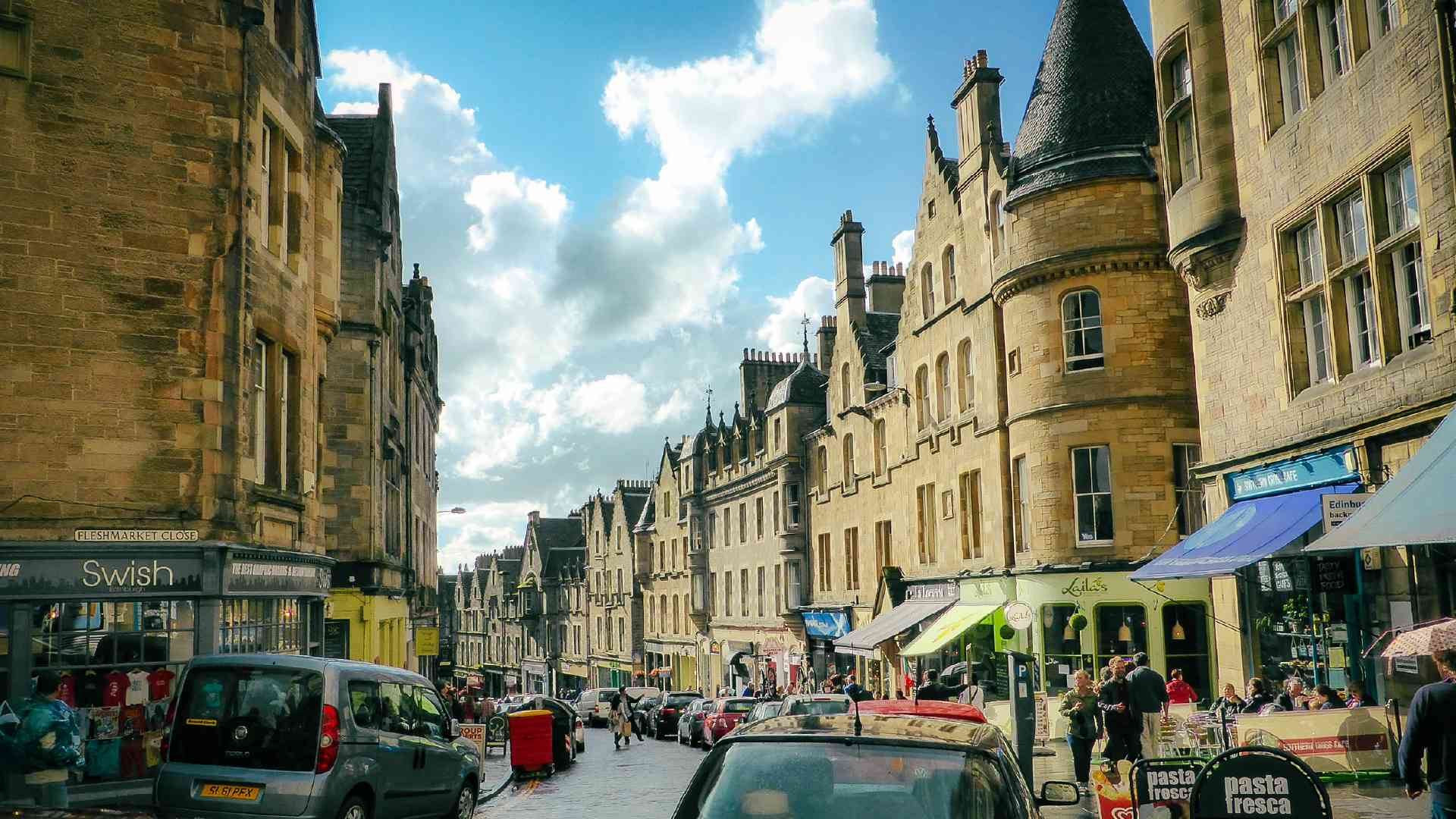 First up is Greyfriars, an atmospheric old kirkyard with centuries of stories and the beloved Greyfriars Bobby — a wee dog whose loyalty still tugs at the heartstrings. From there, we’ll wander down Victoria Street, a delightfully wonky road lined with colourful buildings and quirky little shops (perfect for a first photo or two!). Then it’s off to the Grassmarket, once the site of public hangings, now a lively square filled with pubs, character and echoes of history.