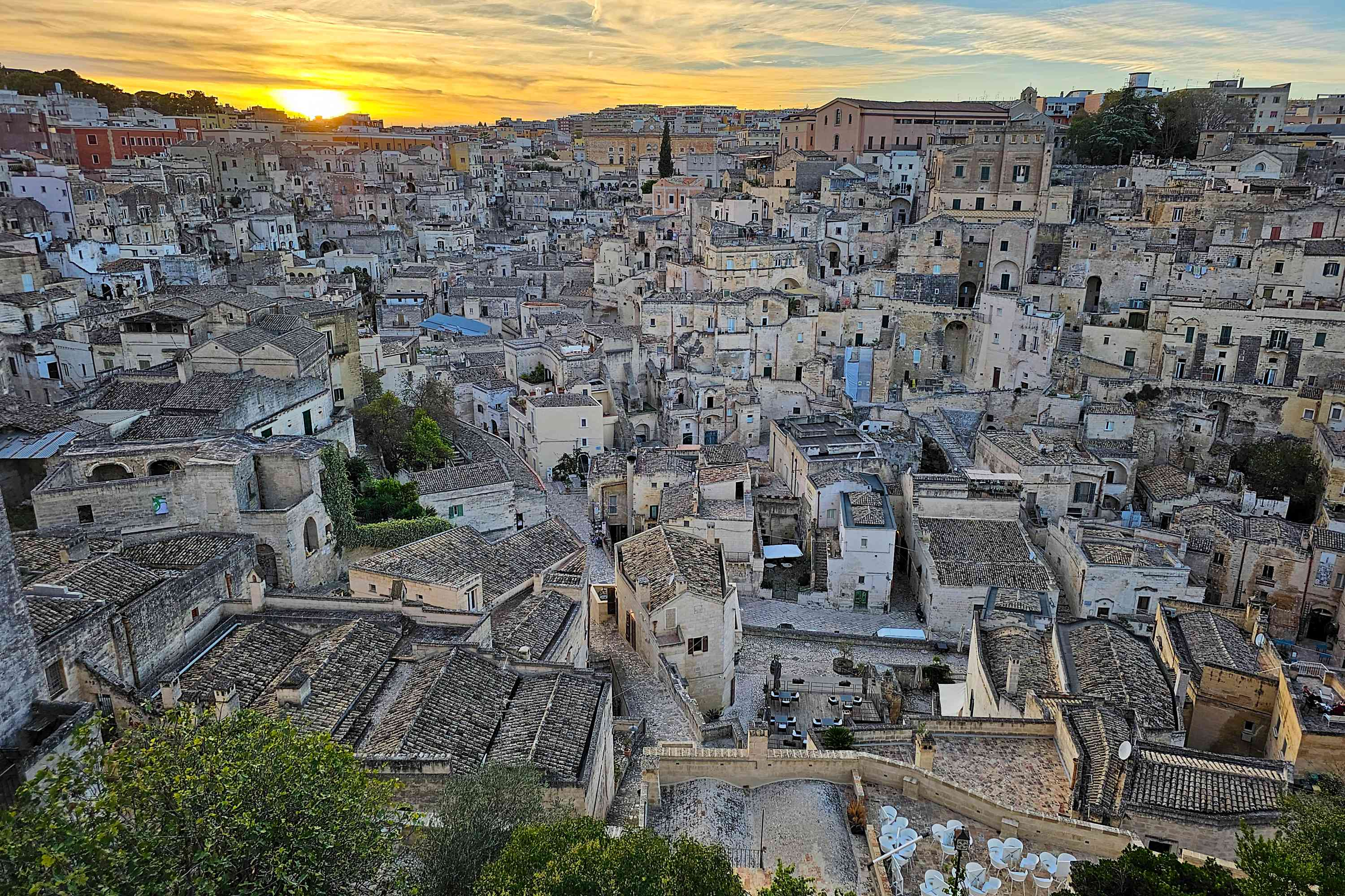 • On top of a rocky outcrop in Italy’s Basilicata region lies Matera. Situated in the heart of the UNESCO World Heritage-listed site, we’ll stay in a famous sassi cave hotel which has been carved into the mountainside. Enjoy panoramic views from the terrace or stroll to some of the town’s most famous attractions, like the Cathedral of Matera, San Giovanni Battista Church and Tramontano Castle.