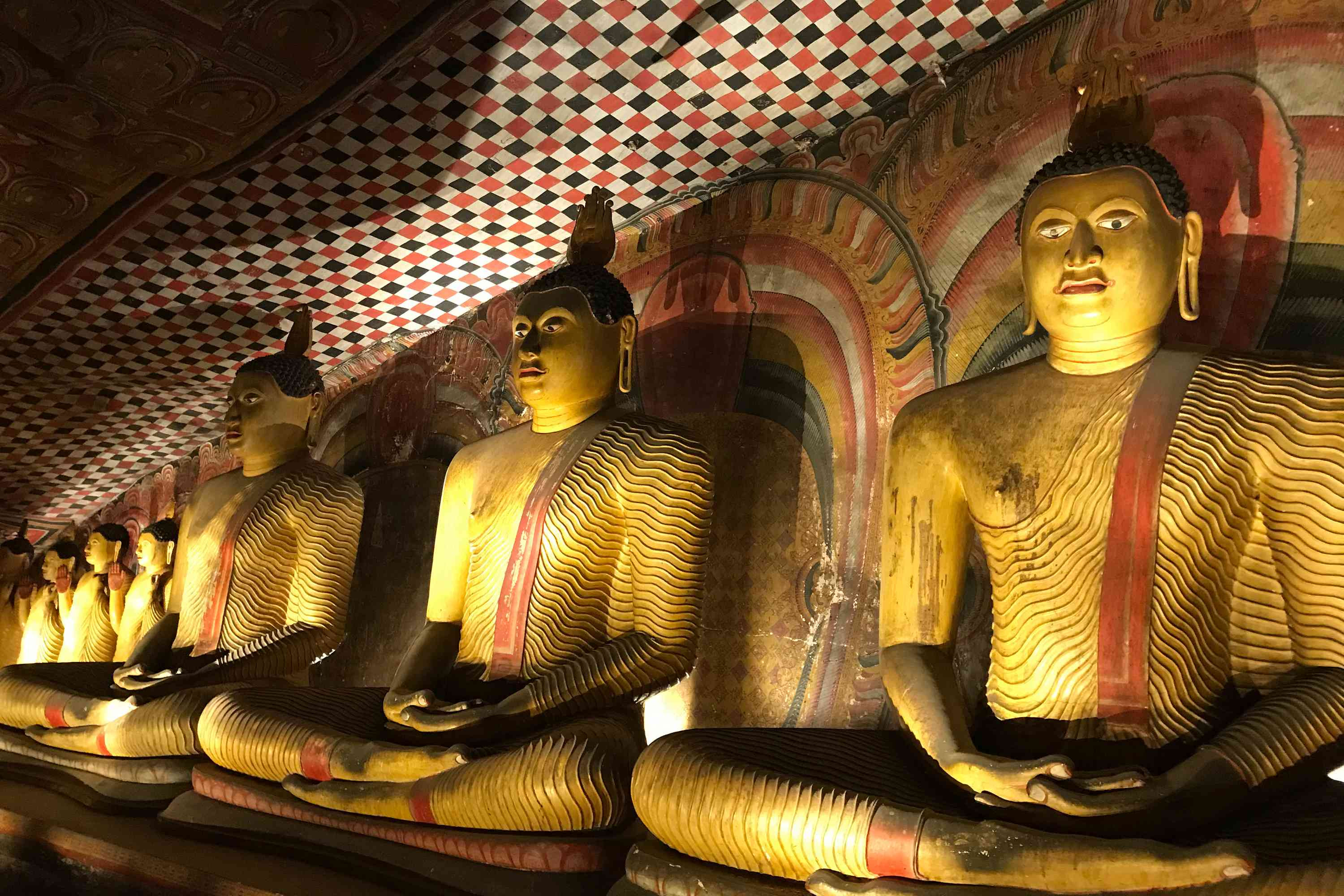 Next, we’ll make our way to the Dambulla Caves, home to the best-preserved cave temple complex of Sri Lanka. The cave temples were built in the 1st century and the gigantic granite outcrop towers more than 160 metres above its surrounds. We explore the caves covered by ancient frescoes and their interior where over a hundred statues of Buddha (157 to be exact) are housed, some carved from the rock itself.