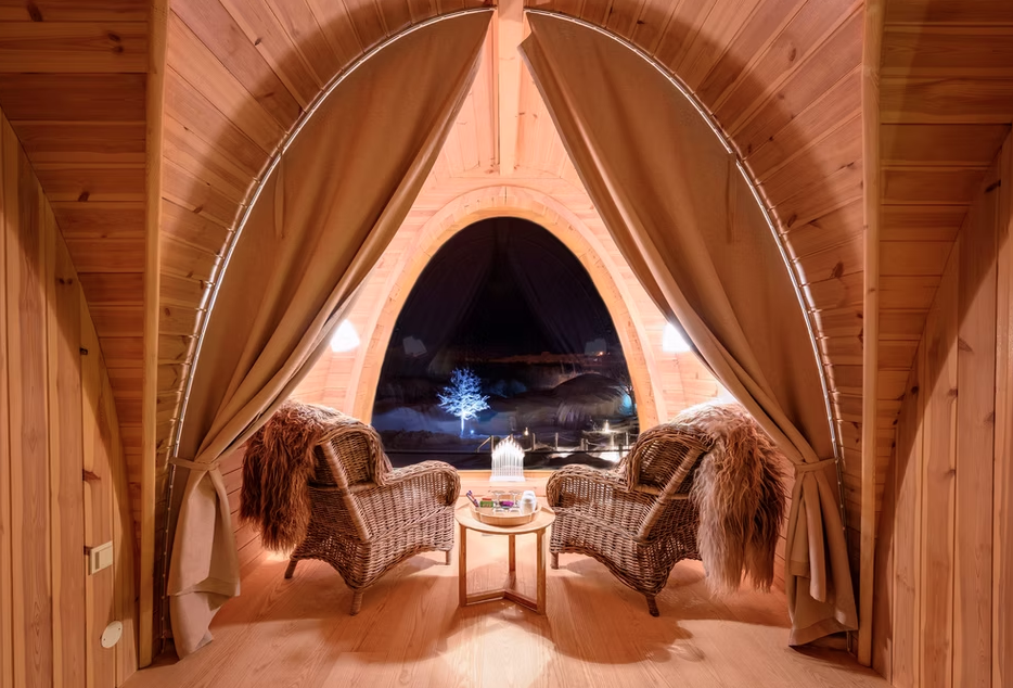 - Sparkling piccolo bottle (non-alcoholic), tea, coffee and sweets as complimentary arrival treats in your room at Aurora Cabins