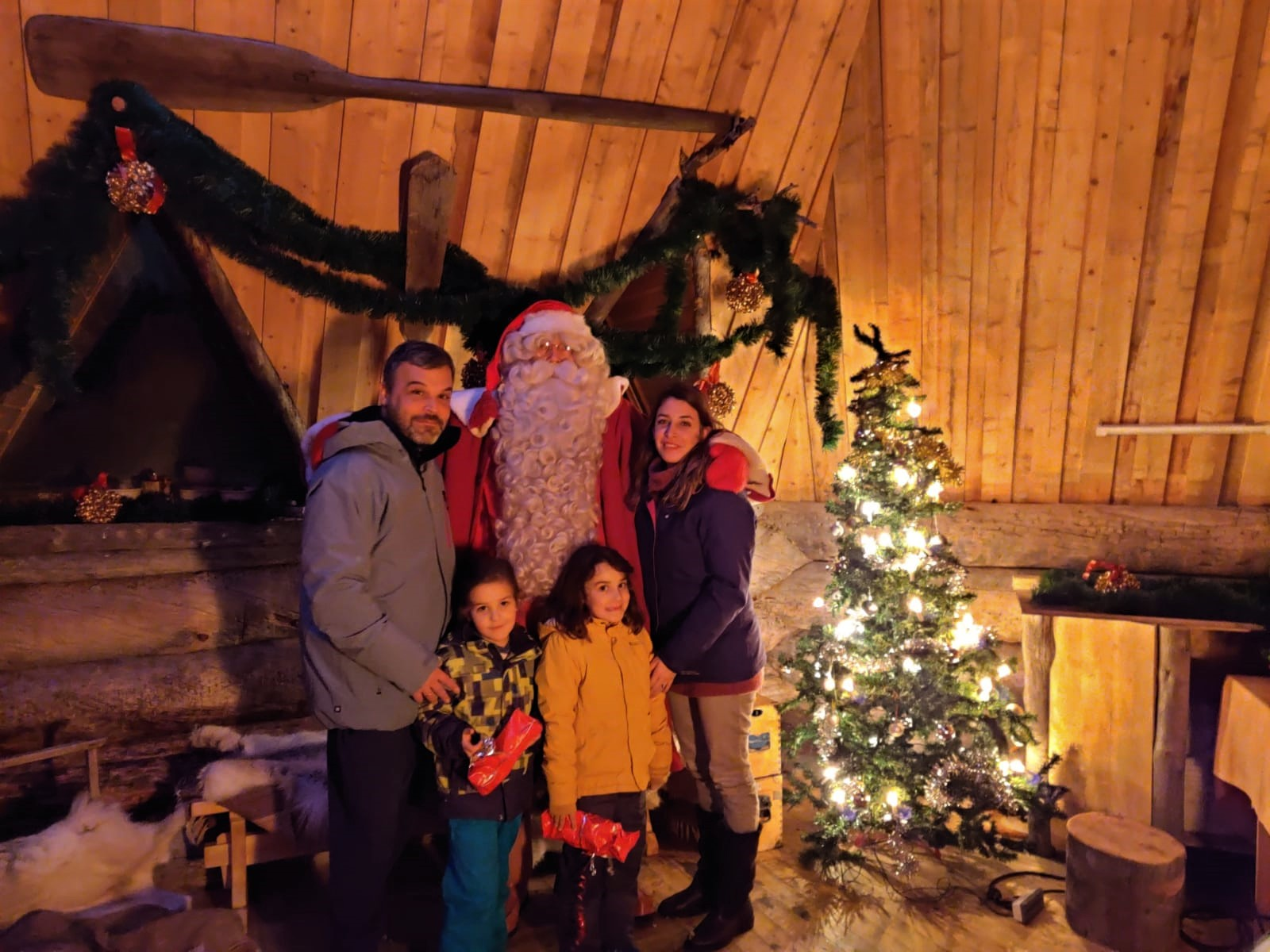 - Six guided activities with transportation from the accommodation including a Husky safari and Private Santa visit, Reindeer safari and soup lunch in a farm, Northern lights hunt by car, Snowmobile Safari and Ice-fishing