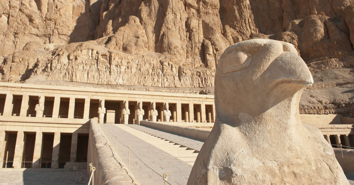 Our next stop is the Temple of Hatshepsut. Pharaoh Hatshepsut is believed to be the most successful reigning female power of Egypt, no mean feat during Ancient Egyptian times, and was buried alongside her male counterparts in the Valley of the Kings. Historians throughout modern history offer contrasting information about her reign but walking into the shadow of Hatshepsut's immense temple, which is built into the limestone rock face on Luxor's West Bank, is a key symbol of her achievements. The structure is unexpectedly modern by design and was once linked directly with Karnak Temple on the East Bank.