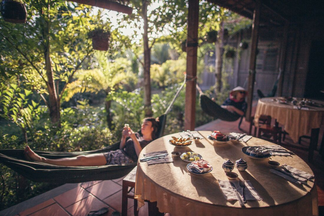 This morning you’ll wave goodbye to Ho Chi Minh City for the night and travel south by private bus to Ben Tre. When you arrive, you’ll board a small traditional boat and explore the intricate waterways of the Mekong Delta. The delta is known as ‘the rice bowl of Vietnam’ for its abundance of rice paddies, fruit and flower orchards. During the boat trip, you’ll stop to sample some of the fresh tropical fruit and visit a selection of cottage industries in the area. Then, you’ll get your first taste of Vietnamese hospitality and tuck into a home-cooked Vietnamese-style lunch at a local family home. Then, around sunset, you’ll make your way to your guesthouse to spend the night with the locals and enjoy another wonderful meal featuring regional specialties.
