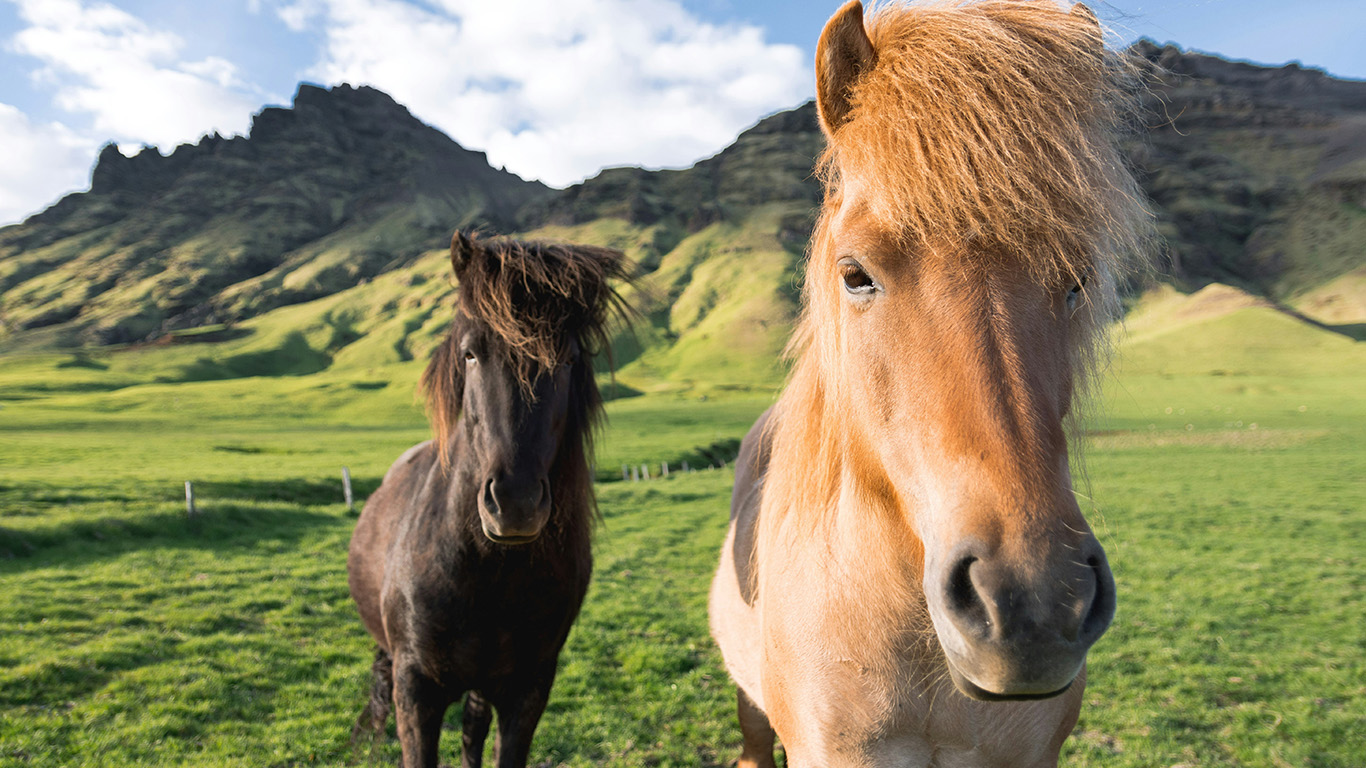 This morning, experience an Impact Moment with a visit to an Icelandic goat farm. Learn how local farmer, Jóhanna, helped to bring this unique breed, dating back to the time of Iceland’s settlement, back from the brink of extinction. After visiting with the friendly goats, enjoy a simple meal of homemade specialties from the farm. Then, bundle up and ascend Langjökull glacier** via mountain truck and go “Into the Glacier” to experience the purest blue ice color in this man-made tunnel, the world’s largest.*** Cap the day at the enchanting Hraunfossar waterfalls (Lava Falls), where clear, cold springs seep through the lava field and form many small waterfalls into the Hvítá River. Tonight, after dinner, gaze at the sky in search of the northern lights.