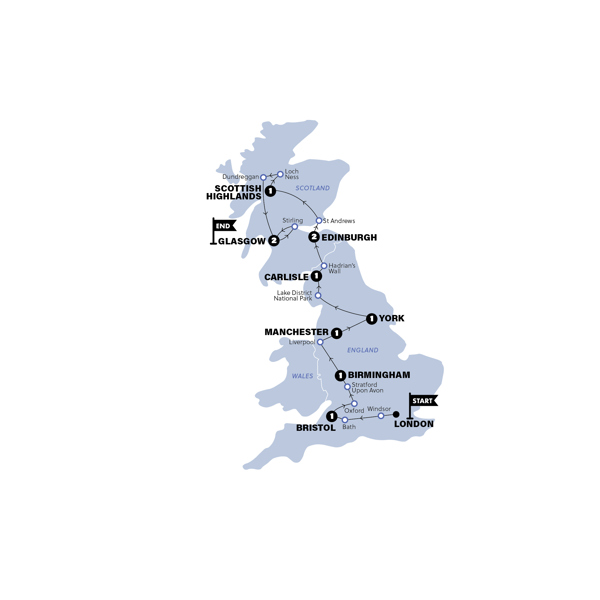 Good morning dear Londonites! Meet your new crew and hop onto our coach. It’s time to make some moves.Hello Windsor, at the top of our agenda today is obviously, getting a magnificent view of the royal Windsor Castle! Afterwards, you’ve got some free time. So why not strut like a royal around this beautiful town studded with gardens and riverside views. And then it’s back on the coach to our next destination.Ready? We’re going back in time. Because you’ve got some free time to explore this historical town. Visit the Royal Crescent, Roman Baths, the Jane Austen museum or maybe do a canal cruise! (Go on, live your period drama dreams.)Welcome to the sea-side wonder of Bristol. Colourful buildings, crazy cliffs, beautiful bridges - you’re in for a treat. Speaking of treats…drop your bags off at our hotel before heading out on an optional walking tour to check out Bristol’s street art with a local guide. Tonight, we'll feast on a well-deserved dinner then hit the streets for a night out with your newly-made friends.