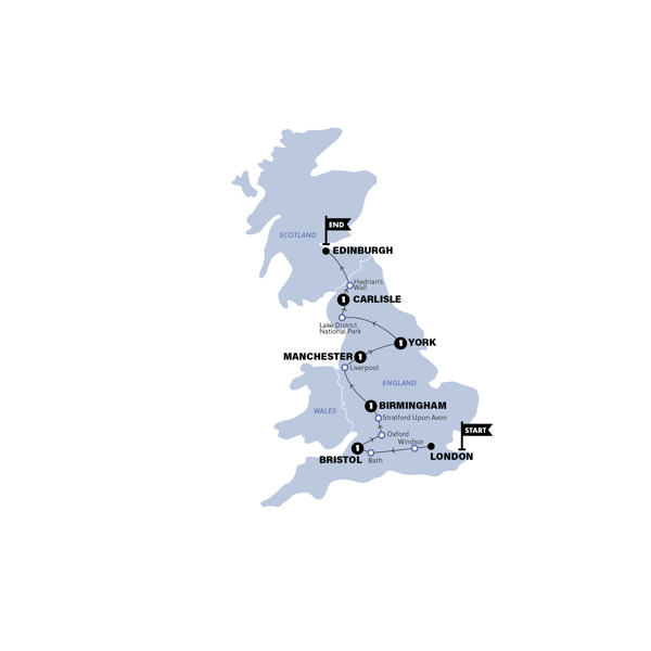 Good morning dear Londonites! Meet your new crew and hop onto our coach. It’s time to make some moves.Hello Windsor, at the top of our agenda today is obviously, getting a magnificent view of the royal Windsor Castle! Afterwards, you’ve got some free time. So why not strut like a royal around this beautiful town studded with gardens and riverside views. And then it’s back on the coach to our next destination.Ready? We’re going back in time. Because you’ve got some free time to explore this historical town. Visit the Royal Crescent, Roman Baths, the Jane Austen museum or maybe do a canal cruise! (Go on, live your period drama dreams.)Welcome to the sea-side wonder of Bristol. Colourful buildings, crazy cliffs, beautiful bridges - you’re in for a treat. Speaking of treats…drop your bags off at our hotel before heading out on an optional walking tour to check out Bristol’s street art with a local guide. Tonight, we'll feast on a well-deserved dinner then hit the streets for a night out with your newly-made friends.