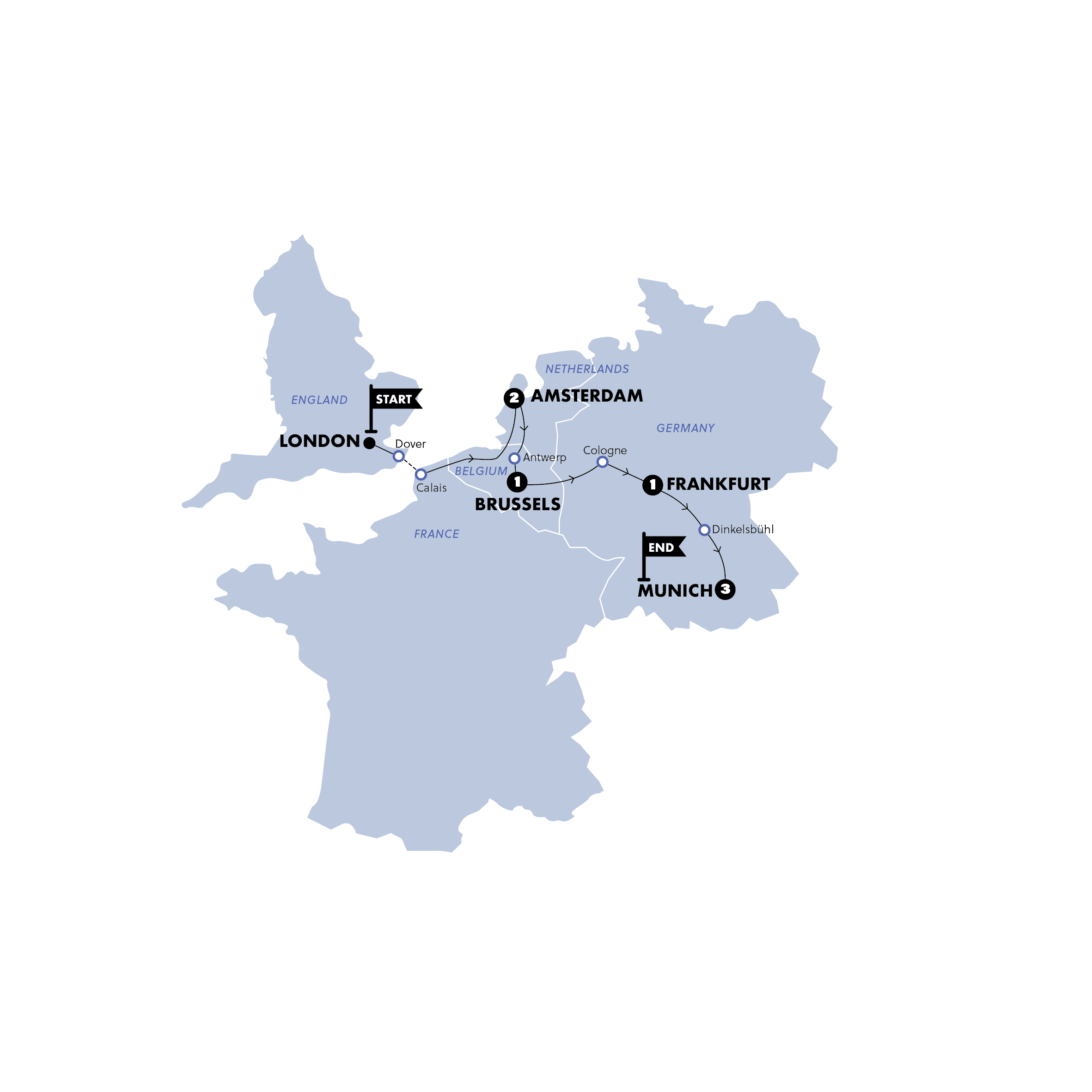 London to Amsterdam via Dover & Calais