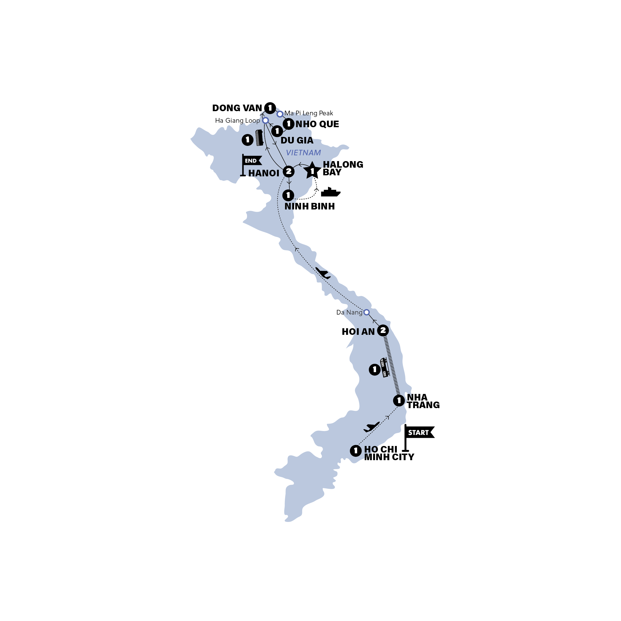 Morning! The sun's yet to rise, so you've some time to catch some more sleep at our local homestay, and grab breakfast too.  This morning, we’ll hit the road en route to Dong Van. This world-famous route is packed with incredible views. On our drive, you’ll see the Heaven Gate, Twin Mountain, Tham Ma slope and even visit an ancient palace - all while being surrounded by lush green valleys all the way through. Plus, we'll make a quick stop to meet the people working to preserve the craft of H'mong linen weaving.  It’s been a looong day! What better way to end it than by devouring delicious local food with your crew. Then, it’s off to your cosy, cosy beds for the night.