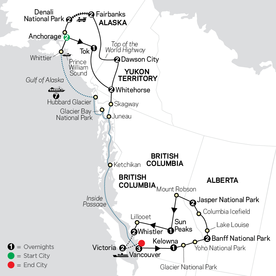 Your cruise ends this morning with a transfer to your Vancouver hotel. Once settled, feel free to explore this vibrant city nestled between the Pacific Ocean and the Coast Mountains. Take a walk to the harbourfront or dig into the city’s thriving culinary scene offering a wide array of delicious cuisine. (B)