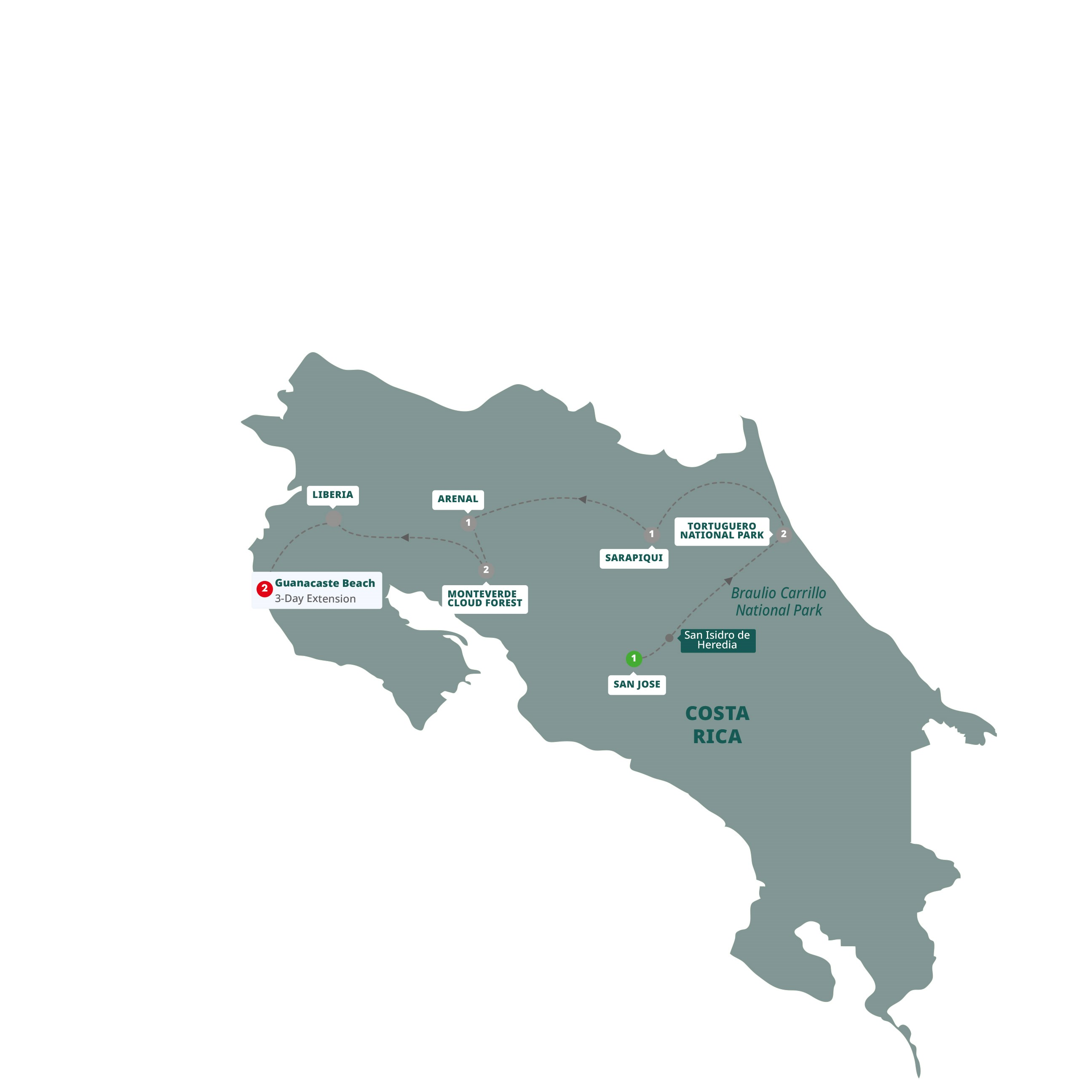 - Visit Tortuguero Village, Sarapiqui and Monteverde Cloud Forest
