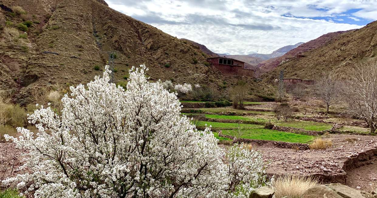 After an early breakfast, we'll drive into the High Atlas to the Tizi n'Fedrhate Pass, around two hours away, along the former caravan route to El Kelaa des M\ Gouna. Known as the 'town of the roses\ , El Kelaa des M\ Gouna is blanketed by scented blossoms each spring. These are harvested each May in the Festival of the Roses, before being processed into rosewater which is then sold throughout the Islamic world. From the high pass, we'll start our cycle down into the northern foothills of the Atlas Mountains. Amid the silence of the mountain valleys, we'll pass by local Berber communities at work on their farms, producing olives, figs and wheat. We'll eventually catch up to our bus, where we'll board to travel back to Marrakech, around two hours away.