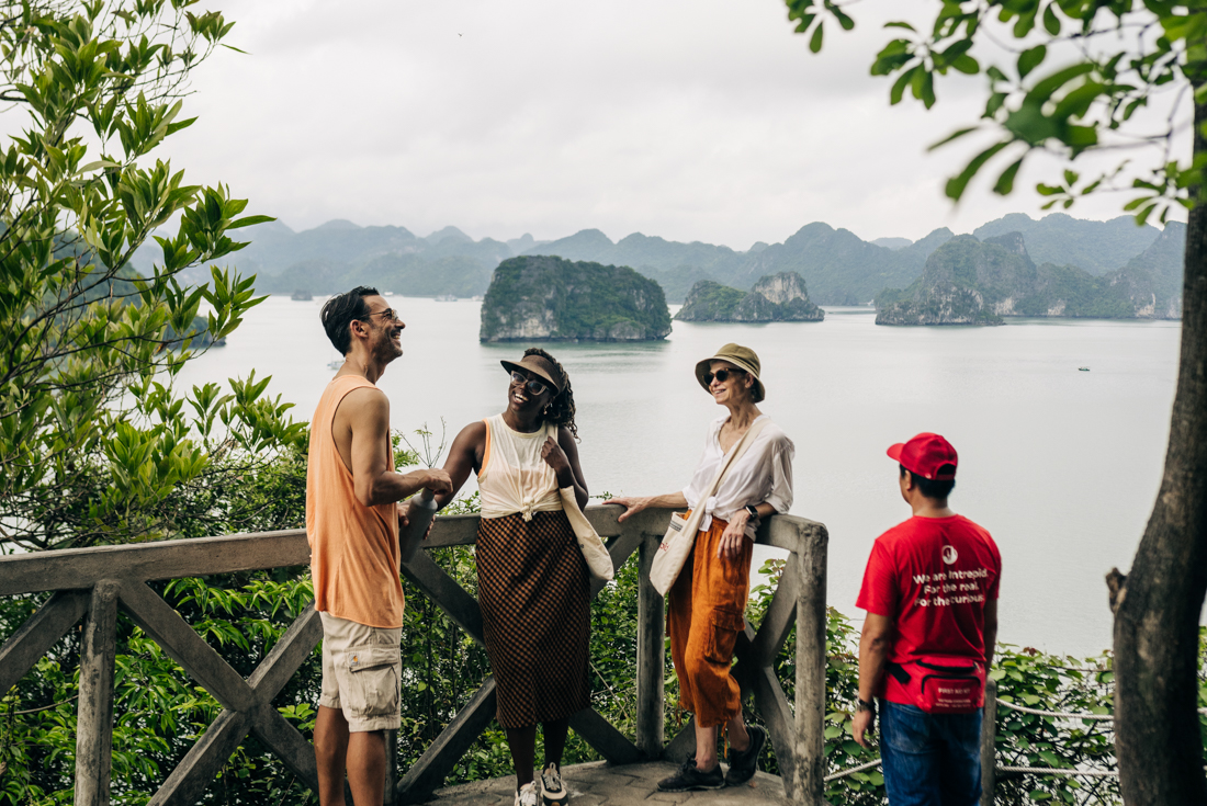 Enjoy one final early morning ride through the beautiful green scenery of the Ninh Binh Province, along the banks of the duck-filled Hoang Long River to the Bai Dinh Buddhist Temple. Here, you’ll bid farewell to the cycling support team and transfer by minivan to the UNESCO World Heritage site of Ha Long Bay. Climb aboard a traditional junk-style boat and venture out into the emerald waters of the bay. The boat will glide through the often misty waters, past limestone peaks that jut dramatically out of the water. The area was created over thousands of years by waves and wind, and you’ll explore the best of it, both by boat and on your own two feet. Visit the caverns of Surprise Cave and get the blood pumping up and down the many staircases, then sail past the enigmatic Ga Choi Islet to your kayaking excursion straight into Ngoc Trai zone. In the warmer months, you’ll make a stop at either Ti Top Island or Soi Sim Island before spending the night aboard the boat beneath the starry night sky.