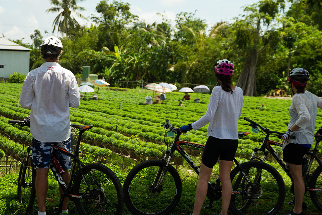 This morning you’ll hop on the bus and drive to the Mekong Delta – known as the ‘rice bowl of Vietnam.’ The fertile delta is famous for its harvest of tropical fruit, flowers and rice, as well as the waterside views over the canals. When you arrive, you’ll get on your bike for the first full day of cycling. Ride along quiet backroads, past farms and villages and make a stop for lunch. You’ll also get to visit orchards and some local cottage industries. Around sunset, make your way up one of the canals by boat to reach your homestay. Tonight, you’ll stay with a local family in their home and sit down for a homecooked dinner of local specialties.