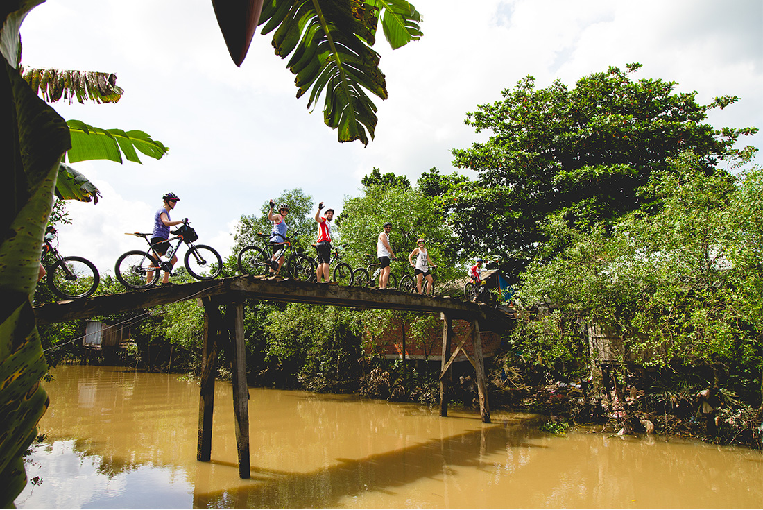 This morning you’ll hop on the bus and drive to the Mekong Delta – known as the ‘rice bowl of Vietnam.’ The fertile delta is famous for its harvest of tropical fruit, flowers and rice, as well as the waterside views over the canals. When you arrive, you’ll get on your bike for the first full day of cycling. Ride along quiet backroads, past farms and villages and make a stop for lunch. You’ll also get to visit orchards and some local cottage industries. Around sunset, make your way up one of the canals by boat to reach your homestay. Tonight, you’ll stay with a local family in their home and sit down for a homecooked dinner of local specialties.