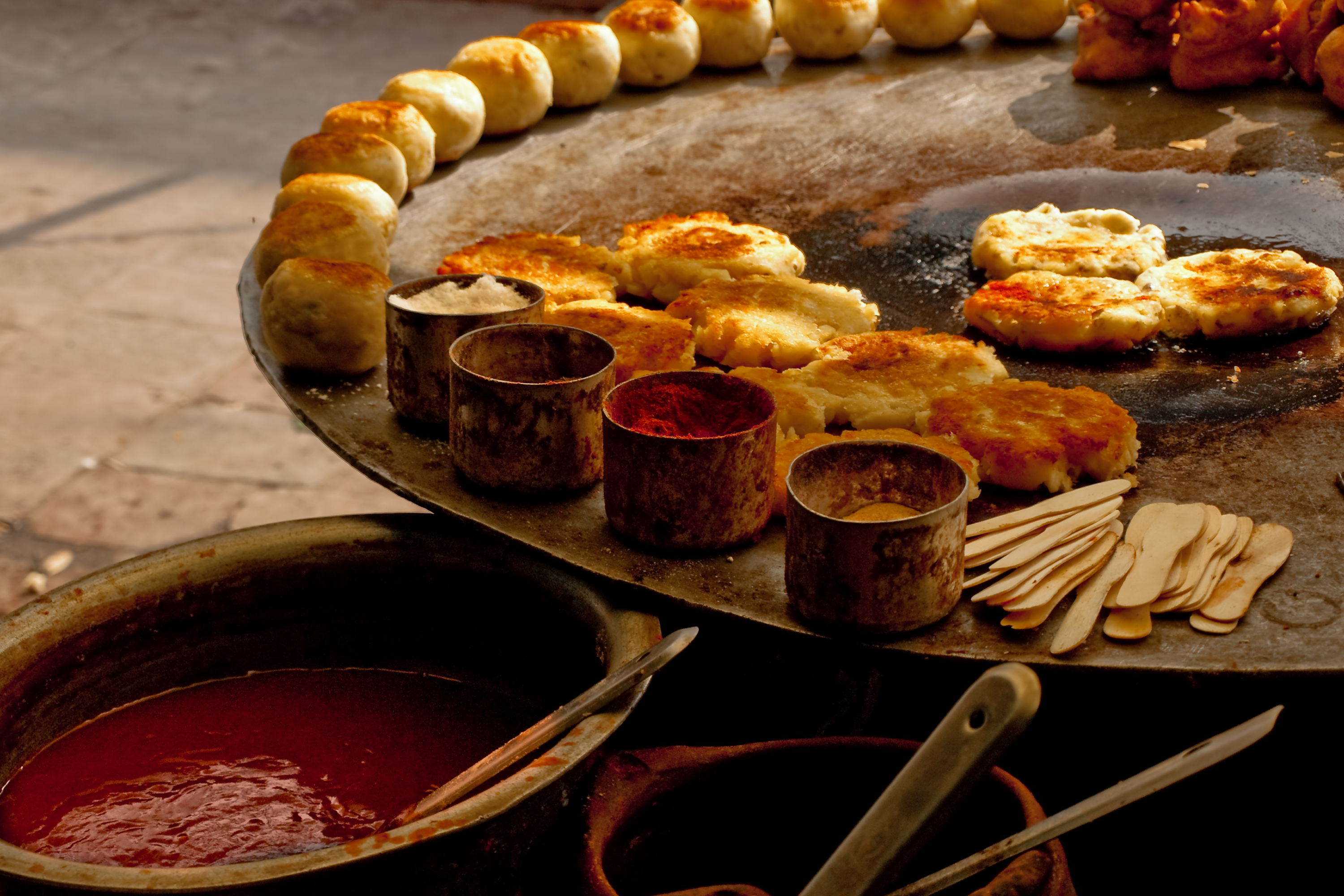 This delicious Delhi food tour begins with a bit of local culture. Hop on a cycle rickshaw (10 min ride), one of the most colourful methods of transportation in Delhi, and pass through the city’s picturesque colleges and universities, stopping at an ancient Hanuman temple. After visiting the temple, we head out to our first food stop and witness how fresh local shawarma (kebab) is made. From here, we’ll continue on to an iconic neighbourhood eatery that is popular with everyone, including students from nearby colleges. Here, you can enjoy a local favourite – fresh fruit beer – as well as momos (dumplings) and banta, a delicious lemon-based drink that’s an ideal refreshment for hot Delhi weather. We then continue through the Kamla Market and emerge into a narrow alley full of delectable street food joints. This lane is a great spot for photographers and food lovers alike, and here’s where we’ll sample several local delicacies like golgappas and bhelpuri. Yum! After sampling nearly everything we possibly can, walk it off through some beautiful nearby markets, admiring everything including the work of a local henna painter. Just when you didn’t think it possible, we’ll find more food! Sample some crispy potatoes, pao bhajji, and stop for the best homemade ice cream in Delhi, kulfi-falooda. A little more walking through the bustling, fascinating streets of Delhi will lead us to our final stop – a sweet shop, where we’ll have the opportunity to try some fresh samosa, gulab jamun, and Jalebi. This delectable Delhi tour will leave you very satisfied and an aficionado of Delhi’s best local food, which you’ll be craving long after you leave this enigmatic city.