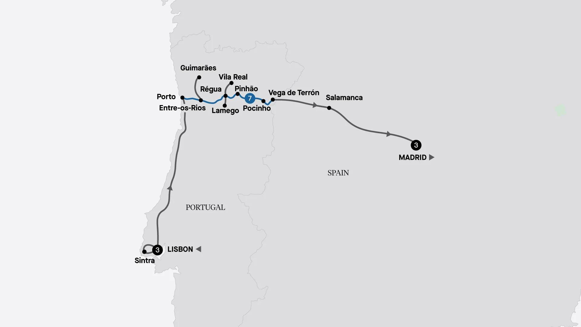 Begin in the historic city of Lisbon before boarding your seven-night Douro River cruise. Taste port in Porto, visit a family-owned quinta in Entre-os-Rios, and explore castle ruins in Figueira de Castelo Rodrigo. End in the Spanish capital of Madrid.