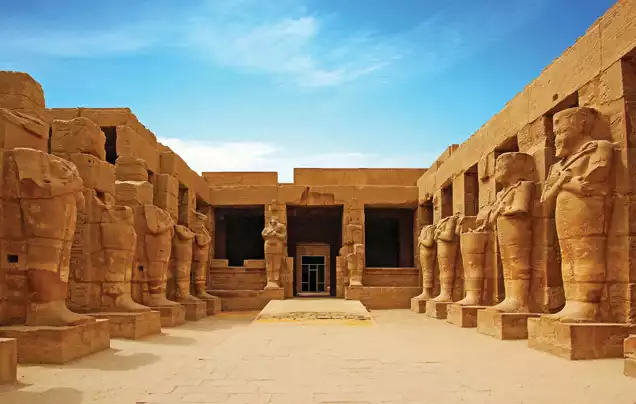 Take a short one-hour flight from Cairo to Luxor, where we transfer to the port and board your Nile cruise ship for our four-night cruise. Refresh yourself before this afternoon's excursions around Luxor's East Bank. Begin at the Temple Complex of Karnak, famed for the majestic Hypostyle Hall with its 134 gigantic stone columns, along with the Avenue of the Sphinxes and the Sacred Lake.