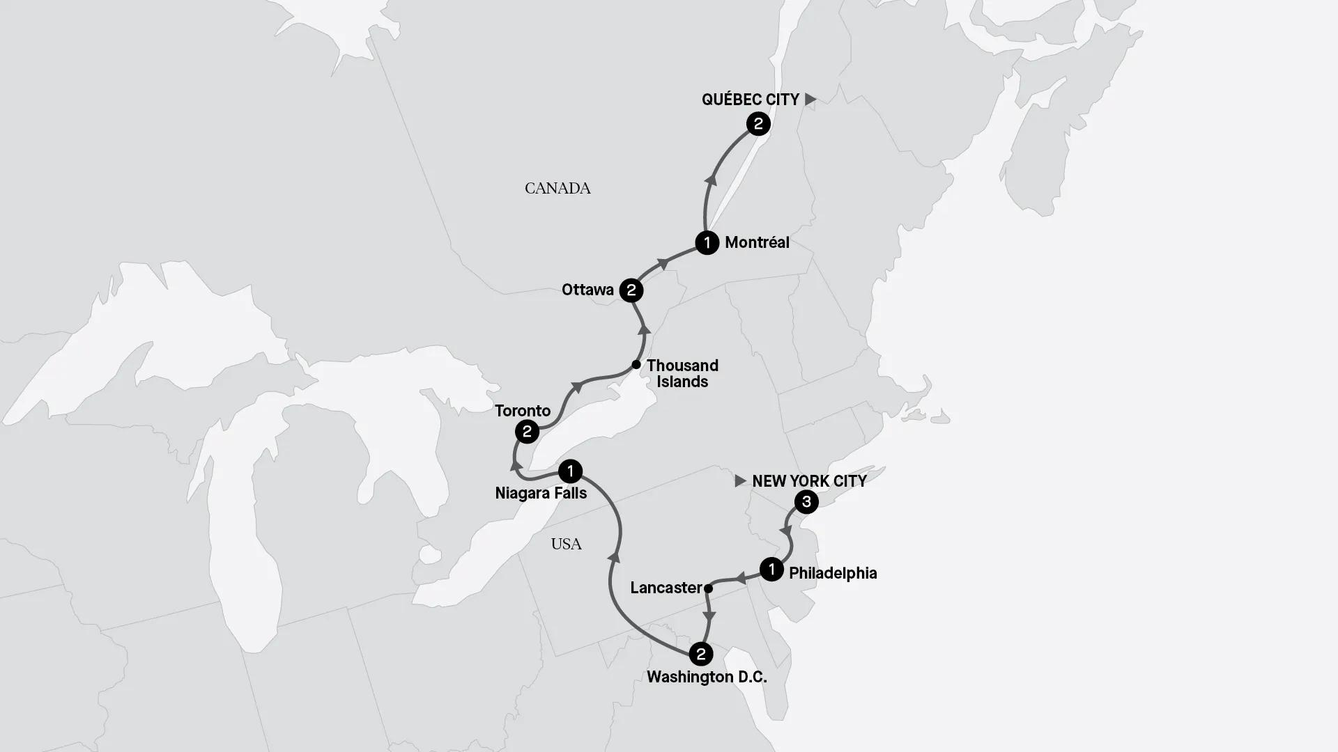 Discover the endless wonders of the eastern reaches of North America, exploring iconic metropolises including New York City, Toronto and Montréal, and delving into the history of Philadelphia, Washington DC and Ottawa. Stay overlooking Niagara Falls, cruise the Thousand Islands, and savour an Amish lunch.