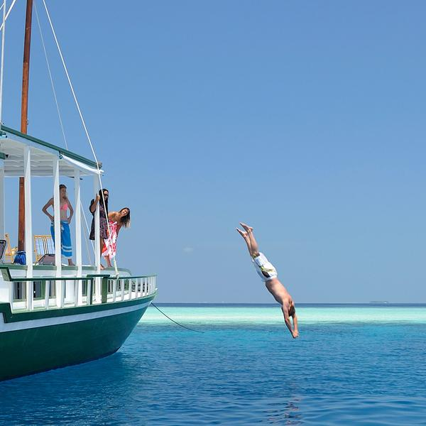 Off the boat, opt to swim and enjoy snorkelling about twice a day amongst the spectacular marine life of the Maldives. The shallow islands and amazing coral reefs make it a key feeding ground for many species of tropical fish. Keep an eye out for turtles, reef sharks, stingrays, and octopuses.