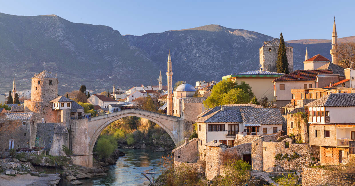 Set in the Herzegovina region, Mostar still bears visible scars from the 18-month siege it endured during the 1990s. Yet despite its turbulent history, the city now has a relaxed, welcoming atmosphere - a striking contrast that speaks to its resilience. The Ottoman influence is still strongly felt in the cobbled lanes, historic mosques and traditional architecture. We'll explore the old bazaar, visit a mosque, and wind our way through the heart of the city to one of Bosnia and Herzegovina's most iconic landmarks - Stari Most (Old Bridge).
