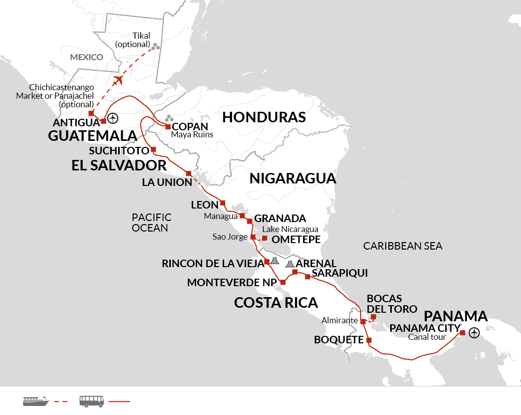 This morning, we wave goodbye to Nicaragua and head to the smallest country in Central America- El Salvador. Don't let its size fool you; the country is teeming with towering volcanoes, a spectacular coastline, and beautiful colonial towns and villages.