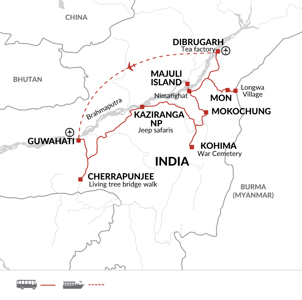 Our tour begins in Guwahati, Assam's bustling capital, which sits on the banks of the mighty Brahmaputra River. Our hotel is located close to Paltan Bazaar and the riverbank with plenty to explore within walking distance.