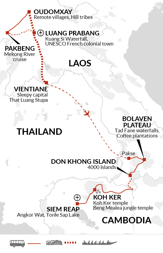 Day 10 - Travel by car and then by boat into the 4,000 Islands region of southern Laos