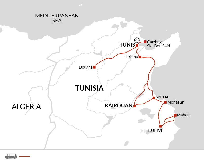 Our tour starts in Tunis, the modern bustling capital of Tunisia. There are no activities planned today, so you're free to arrive in Tunis at any time.